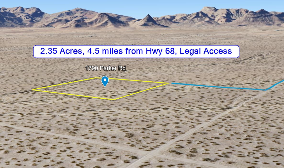 2.35 acre clean lot 4.5 miles from Highway 68 and 1.2 miles from a paved Estrella Rd that leads directly to the highway, you can haul water or drill a well, add solar and battery and a septic system and place a manufactured home or tiny home, build a barndominium or other assembled permitted structures for a full time residence, rental, or weekend getaway.