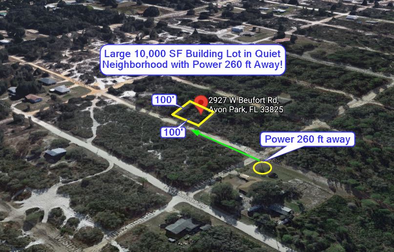 Beautiful, large and private building lot with lakes all around and just over an hour’s drive from Orlando, Florida with electric service 260 ft away. This property is not in a flood plain, does not have an HOA fee and can be developed with a well and septic system. Site-built and modular homes are allowed and manufactured homes are not allowed in Avon Park, keeping these neighborhoods clean and at higher values than other communities that allow mobile homes. There are lakes all around for boating, fishing, hiking, bird watching and other recreational activities. Comparable lots on Zillow are going for $9,000 and higher and many of those lots for sale are much smaller than this property. Get this property today and hold for investment or build your dream home!