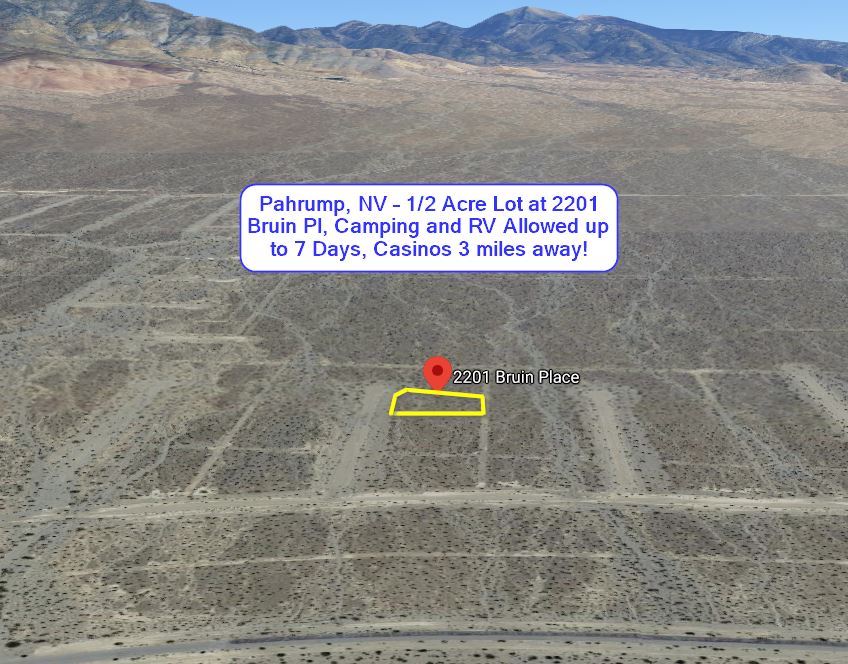 You do not need to be in Las Vegas to experience a lot of wonderful things as Pahrump, Nevada has it all too. This ½ acre lot is perfect for a manufactured home or weekend getaway a little further from the city center, bringing you with a serene and peaceful ambiance away from the bustle of the city! There are no utilities and this is a perfect time to invest for the growth in Pahrump and Las Vegas. Sitting about an hour north of Las Vegas, the Pahrump Valley was originally inhabited by the Shoshone. With pioneers making their way west in the late 19th century and the worrisomely bleak Death Valley over the next mountain range, many early settlers decided to set up shop. Before long, the community depended on alfalfa, cotton and livestock ranching. While close to 40,000 people call Pahrump home today, it remained fairly small for many decades and was so sheltered that it didn’t have a telephone service or paved roads until the 1960s.